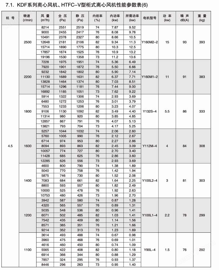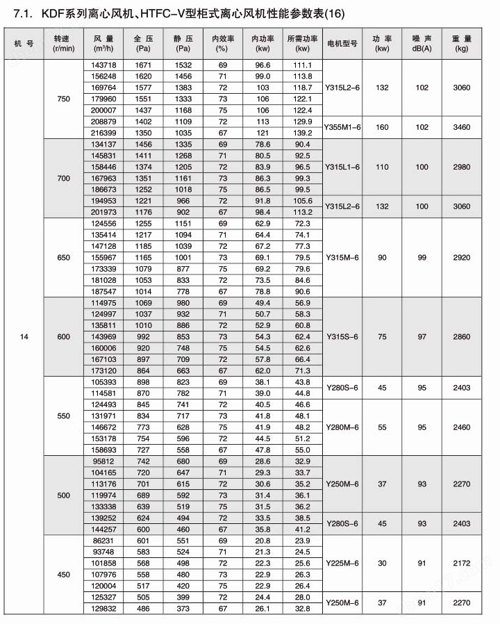 HTFC-V型柜式离心风机箱KDF后倾机芯风机风机按直径分为250~1600mm十七种规格,系列风量为1000~300000m³/h,全压为280~2300Pa。风机分单速和双速,双速风机配用双速电机,实现两档调速,可满足用户对不同工况点性能调节性能调节的需要,风机也可配用变频电机和变频控制器,实现变频调速,建议调节频率锁定在25Hz~50Hz。